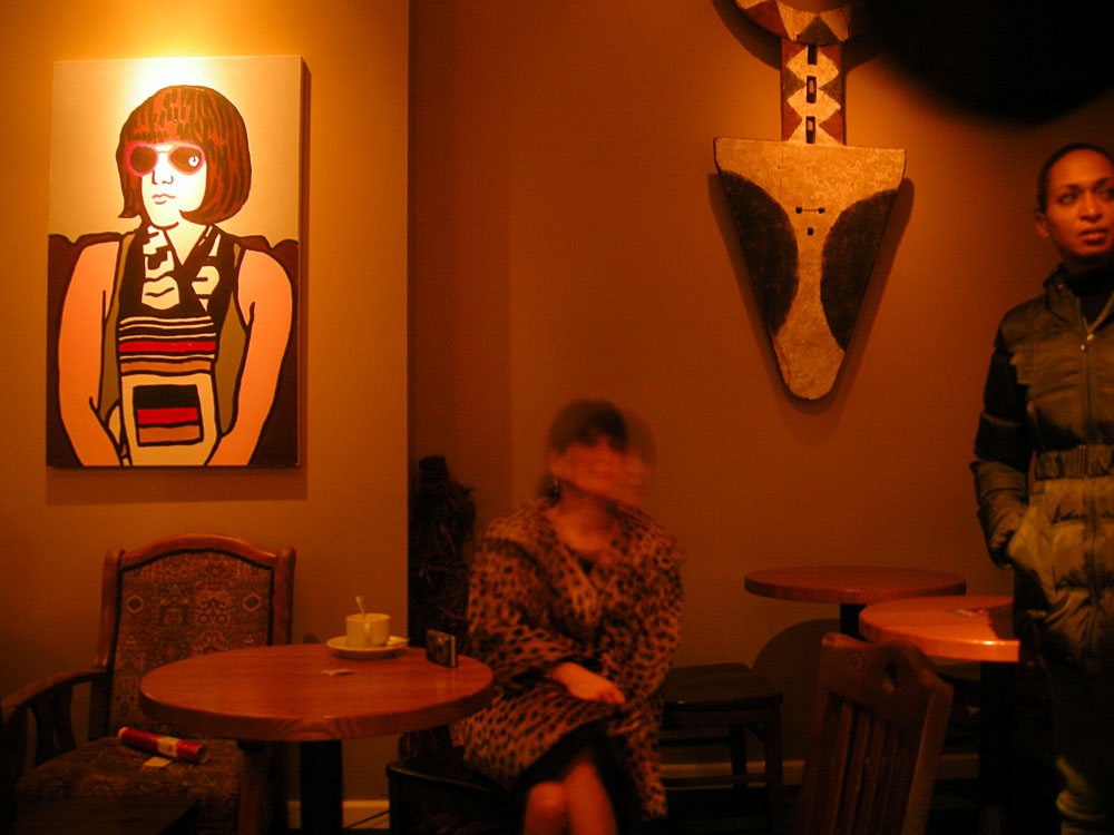 The First Friday Gallery hop gets bigger every month, so big I heard talk last night of venues switching to the second Friday of the month. Places that don’t have any real gallery space at all are jumping on the bandwagon. How would you like to have your art featured on a bright yellow wall on the down ramp at the Record Archive? Only Frank DeBlase could pull that one off. We checked out a few of these not-really-an-art-space shows last night. Geri McCormick had some beautiful letterpress prints in a show at Joe Bean on University. We had never been to this coffee bar, a real bar format but without the alcohol. They roast their own Fair Trade beans and prepare each cup to order, your choice of coffee and brew method. We bought a bag of beans to take home. It took me about a half hour to get the bag open but the coffee was delicious.