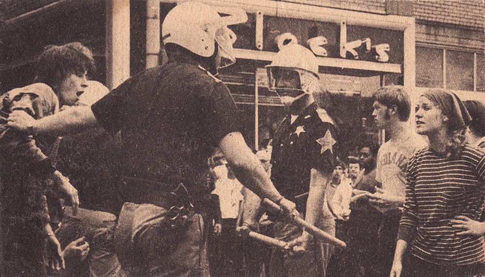 Paul Dodd being arrested at an anti war demonstration in Bloomington Indiana