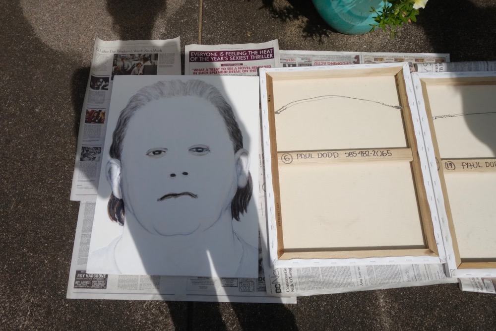 I took a bunch of paintings from 2008 down to the pool so they could sit in he sun. A funny thing happens to white oil pigment when it sits in a box for a few years but a few hours in the sun bleaches that yellowish tint.