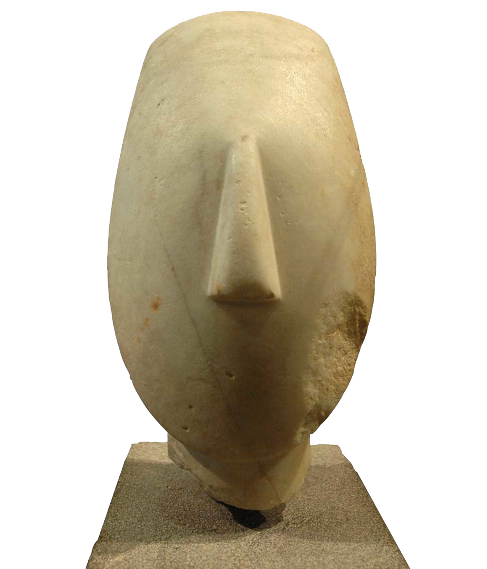 Bucking the trend as the Stone Age entered the Bronze Age during the third millennium BC the advanced civilization in Cypress, Greece was producing these masterpiece sculptures of idols. This one is in the Louvre in Paris and you can take a tour around the female head at this link on their site.