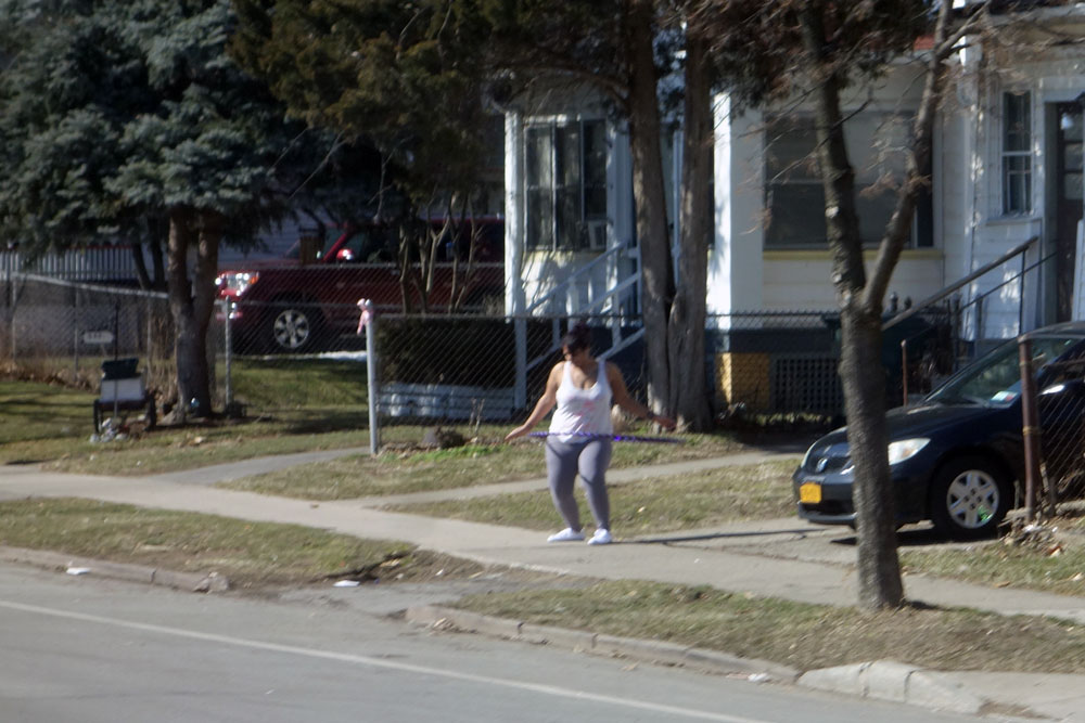 Lamont Place, off Webster Avenue was our fifth stop. We parked in front of the house where she grew up, or the spot where the house once stood. A man cut through the empty lot headed toward Goodman Plaza with a big plastic bag filled with empty beer cans. A reading from “Ghostbread” was especially poignant.