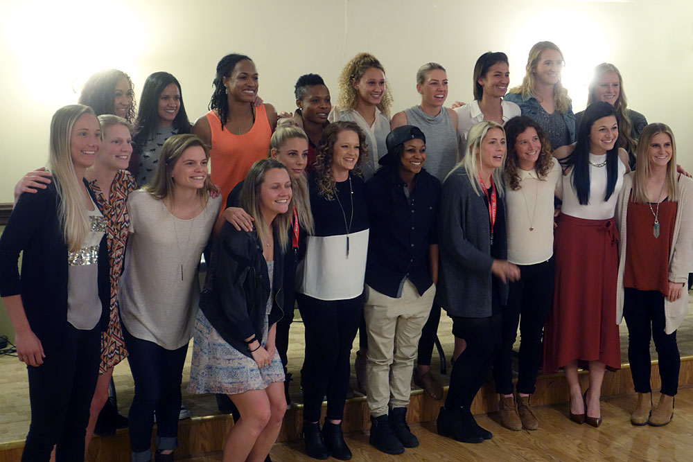 We had never been to the Italian American Club out on Buffalo Road so it was a real treat to be invited there to meet the 2016 Western New York Flash. This club is where all the original support for the Rochester Lancers came from and the reason we were able to see the great Pelé play here. Since we went to every home game last season we bought season tickets holders this year and thus were invited here to meet the team. Each table of fans, there were eight at our table, had a Flash player joining them for dinner. Sabrina D’Angelo’s name was printed on tent card at our table but it was crossed out and Liz Eddy’s name was written in. Sabrina is Canada’s national goalie and one of our favorites but midfielder, Liz Eddy, is one of the hardest working players on the team. Liz was the first call sub last year for the Flash and started last week’s season premier where the Flash beat the the two-time league champion, FC Kansas City. We watched that game on YouTube and Eddy was in top form.